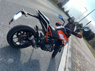 Moto KTM DUKE 125 en color naranja y blanco. Se vende por cambio de cilindrada. Revisiones al día en concesionario oficial ktm. Se encuentra en muy buen estado. -16100km Siempre en garaje. Batería recién cambiada. Extras: - Ruedas de aleación. - Escape mivv carbón homologado. - Paramanos. - kit de protección de motor. - Cúpula puig.