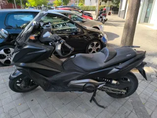 Scooter Kymco AK500 en color gris oscuro y negro. - Diseño deportivo y moderno. - Parabrisas alto para mayor protección. - Asiento doble amplio. - an̈o 2019 - km 73000 - ITV recien pasada - llave y copia - Funciona todo bien - al dia de revision, frenos , ruedas etc