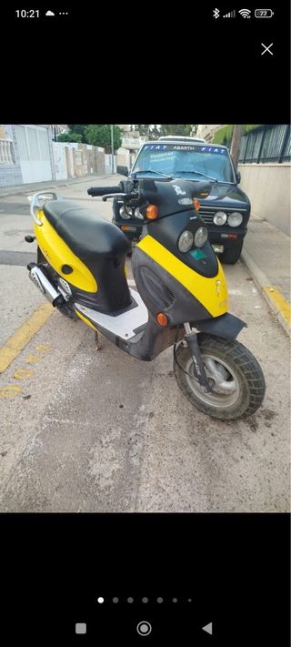 Scooter Kymco Top Boy 50 en colores negro y amarillo. ⚠️Precio Negociable⚠️Quien venga esta semana oferton.. - Completamente original. - Diseño deportivo. - Transmisión automática. - Año 1999. - Kilometros 21.962. - La moto esta en buenas condicines se encuentra sin itv por el motivo que mi padre ya no quiere cogerla porq el trabajo lo tiene super cerca se vende por no darle uso ha que hacerle mantenimiento basico la moto pasa la itv sin ningun problema.