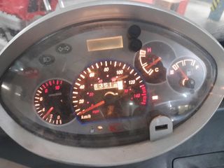 Panel de instrumentos de moto Kymco con odómetro y medidor de combustible. - Odómetro digital muestra 35450. - Indicador de combustible. - Marca: Kymco. Algunos detalles mínimos por la batería, ITV en vigor hasta el 15/06/2026 preguntar para más información