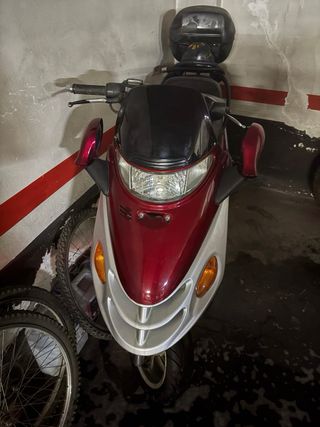 Scooter kymco de 49 c.c. - Color rojo y plateado. - Incluye baúl trasero. - Algunas señales de uso. - Tiempo parada(5 años).