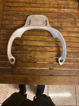 Pieza de repuesto para Kymco Bet & Win de 125 cc. Fabricada en metal plateado. - Diseño curvo con puntos de anclaje. - Acabado metálico.