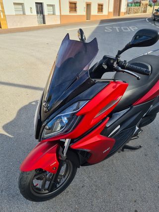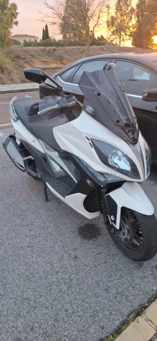 Kymco kxct 300i,correa malossi,aceite y filtros recién cambiado,pastillas sinterizadas delanteras y traseras nuevas y purgado de frenos ,neumaticos en buen estado,cúpula con espejos estilo tmax(con alguna grieta,sin afectar su funcionamiento),2 llaves.regalo otro juego de espejos y cúpula original negra mate.ITV recién pasada y seguro en vigor,abstenerse mareantes