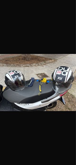 Se vende moto Kymco Agility City 125cc. - Diseño moderno y funcional. - Color blanco y negro. Se entrega con dos cascos, dos juegos de llaves con su código y un seguro para freno de disco con sus dos llaves ITV hasta abril de 2028