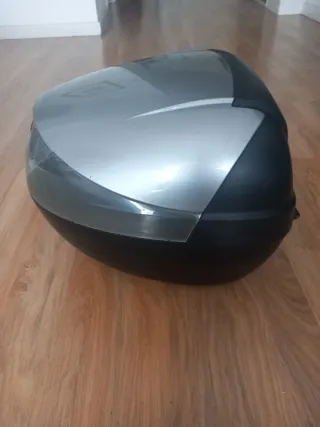 Baúl para moto Kymco Agility 125. Diseño moderno y funcional. - Color negro y plateado.