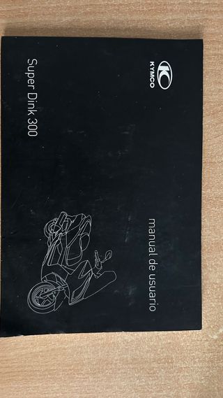Manual de usuario original para la Kymco Super Dink 300i. - Cubierta negra con el logo de Kymco. - Ilustración de la moto. - Texto en español.