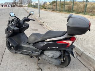 Moto Kymco Super Dink 125 en color negro, con 46.000 km y 10 años de antigüedad. Cuenta con un diseño moderno y deportivo, ideal para moverse por la ciudad con agilidad. - Cúpula alta para mayor protección. - Baúl trasero incluido - Hueco para 2 cascos bajo el asiento. - Asiento cómodo para el conductor y pasajero.