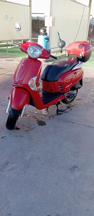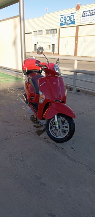 Scooter KYMCO Like 50 en color rojo. Moto en perfecto estado de revista, funcionando todos los días y con la revisión por kilometraje realizada recientemente (correa nueva, bujía nueva, etc.). Modelo muy cómodo, incluso para ir dos personas, espaciosa para ser un ciclomotor, cabiendo incluso dos cascos (dispone de baúl oficial de Kymco y debajo del asiento hay espacio para otro casco) La vendo por cambio.