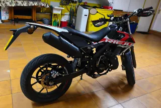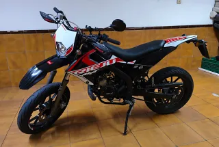 Moto Rieju MRT 50 SM, de finales del 2022; se compró nueva, única propietaria, muy buen cuidada, sin accidentes, siempre ha dormido en garaje; ITV hasta octubre de 2027. Revisiones al día en servicio oficial, moto con deslimitación completa de competición de fábrica (se entrega el kit de limitación). La moto tiene 16.000km, motor NUEVO puesto en Rieju a los 13.000km (cilindro, pistón, juntas, bomba aceite). Neumático delantero nuevo. Se vende por cambio a coche.