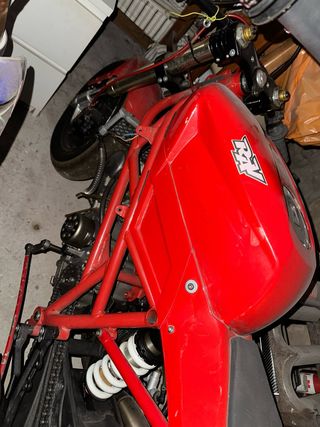 Mini GP Rav 125 en color rojo. Pit bike - Chasis tubular. - Amortiguador trasero. - Llantas deportivas. Hay que ponerla a punto. No tiene carburador.