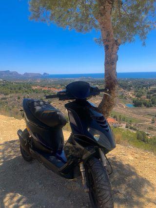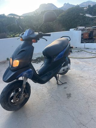 Scooter Piaggio Typhoon 50cc en buen estado. Pendiente pasar itv y cambiar batería. Necesita cambiar lámpara de faro. Aparcada en garaje. Se puede ver sin compromiso. El traspaso de titular correrá a cargo del comprador.