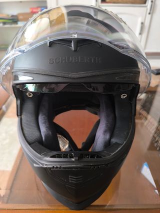 Casco de moto Schuberth en color negro mate. Está en perfecto estado. Antivaho Sin rayones. 1 solo uso está como nuevo Talla s (54/55) Peso: 1,470 kg - Marca: Schuberth - Color: Negro mate - Visera transparente