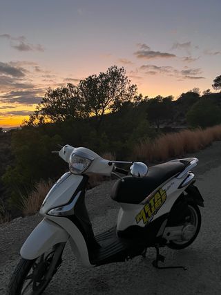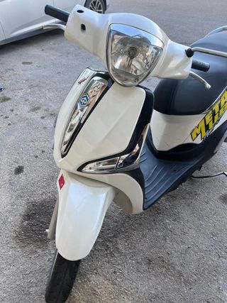 Moto scooter Piaggio Liberty 49cc en color blanco. Ideal para moverse por la ciudad con estilo. - Diseño moderno y elegante. - Asiento cómodo para conductor y pasajero. - Ruedas de 16 pulgadas. - Espacio de almacenamiento bajo el asiento. • precio negociable • acepto cambio por 125