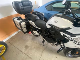 Moto en perfecto estado con muchos extras, maletas laterales originales, baul para dos cascos, puños calefactados, protector de faro delantero, escape gpr homologado mantenimiento recién realizado. Tiene 43000kms, itv recién pasada.mantenimiento de aceite y filtro recién hecho, kit arrastre nuevo y aceite horquillas cambiado.