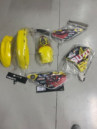 Plásticos de rm 85 a estrenar con kit de pegatinas puesto, bomba de embrague hidráulica y manillar.