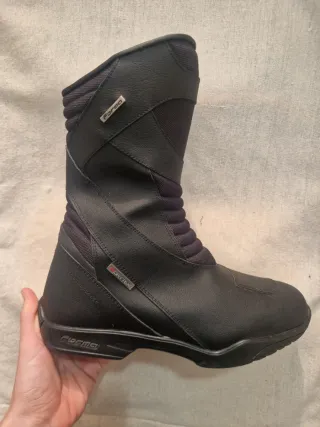 Botas de moto de la marca Forma. - Talla 43 - En perfecto estado. - Color negro. - Cierre con velcro y cremallera. - Membrana Drytex impermeable y transpirable. Solo las he usado 1 vez y las vendo porque me equiboque de talla.
