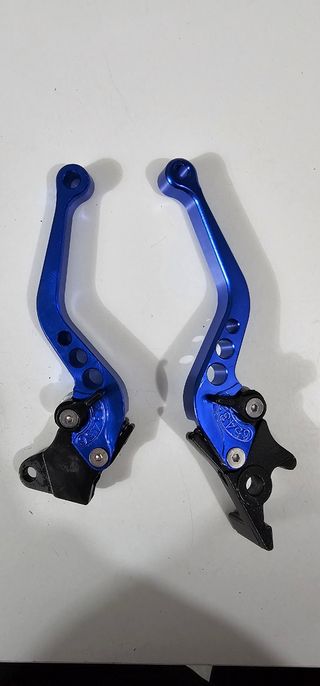 Manetas de freno y embrague universales de la marca Rayana. - Color azul. - Fabricadas en aluminio. - Diseño ajustable. - Nuevas a estrenar