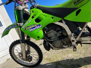 Kawasaki kx 250 2 tiempos. Se aceptan pruebas mecánicas de cualquier tipo. Motor completo hecho con 10 horas: biela nueva , pistón medida A nuevo rodamientos del cigüeñal y cigüeñal equilibrado. Rodamientos del primario y secundario nuevos y kit de juntas y retenes completo. Rueda trasera nueva y delantera a medio uso. kit de arrastre en buen estado y frenada trasera nueva. Bomba de agua nueva. Aceite cambio nuevo. Se vende por cambio de proyecto.