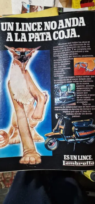 Cartel publicitario original de Lambretta.conjunto de 2 para enmarcar son muy bonitos - Diseño con el lema Es un Linice. - Ilustración de un lince y una Lambretta. - Texto promocional en español.