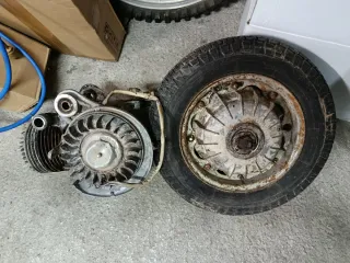 Motor de Lambretta 150. Internamente suelto, no bloqueado. Para restauración o piezas. - Incluye llanta y neumático. - Componentes metálicos.