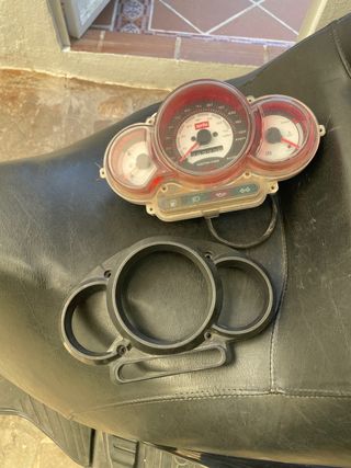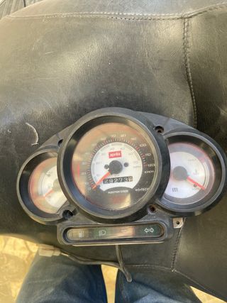 Vendo cuentakilómetros para Aprilia 49cc de inyección. - Incluye el velocímetro, cuentarrevoluciones y testigos. - Piezas de plástico en color negro. - Para Aprilia 49cc inyección. - Los gastos de envio no estan incluidos. - Para mas informacion llamar al tlfo: 614406955