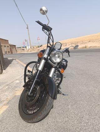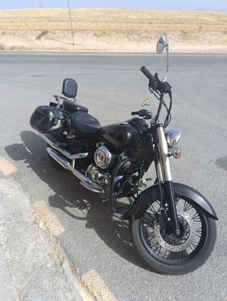 Moto Yamaha XVS Drag Star 650 clásica de 1997. Está en muy buenas condiciones y lista para disfrutar. Apta para el A2. Totalmente restaurada y puesta a punto. Llantas, manetas de freno, defensa, barra de los intermitentes, bastones y botoneras pintadas de negro al horno. 48.000 km. ITV hasta 2027. Incluye alforjas de cuero y rueda delantera extra de 14'' con la llanta también pintada de negro al horno. Cardán completamente restaurado en Junio, aceite y filtros cambiados. Demostrable con papeles de taller. La vendo por haber cambiado a otra más potente. Precio con cambio de papeles incluido. No ofertas ridículas.