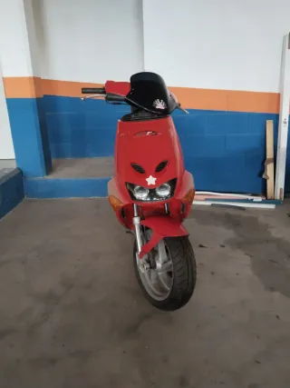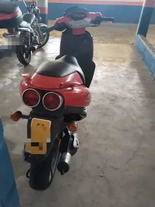 Se vende Yamaha Aerox con un diseño llamativo. - Tiene seguro hasta Agosto, se puede transferir también. - Correa, bujía recién revisado. - Motor muy cuidado. - Diseño deportivo, estriberas fibra de carbono, marcador en fibra de carbono, colín en fibra de carbono y bifaro en fibra de carbono. - Asiento restaurado. - Pegatinas personalizadas. - Asiento negro restaurado. - Arranque a eléctrico - Año 2002. - Itv hasta febrero - Muchas mas piezas - Escape de casa para pasar ITV - Otro Juego de carcasas - Carburador 19,5 - Variador Malossi - Rodillos y Laminas Malossi - Escape Yasuni R + Juego entero de carcasas + Escape de casa