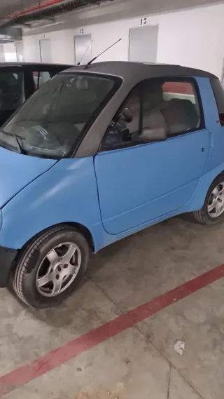 Coche sin carnet en buen estado, ideal para moverse por la ciudad. - Motor de 50cc. - Transmisión automática. - Estilo ciclomotor. -Extras:techo solar, equipo de música, pantalla y maletero con doble fondo leer bien -Posibles fallos Motor de arranque o alternador que no carga la batería si se le pone una si arranca.