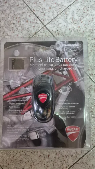 Mantenedor de carga Ducati Plus Life Battery. Ideal para mantener la batería de tu moto siempre en óptimas condiciones, incluso durante largos periodos de inactividad. - Totalmente impermeable. - Ligero y compacto. - Fácil de usar. - Resistente a cortocircuitos e inversión de polaridad. - Material plástico ignífugo. - A prueba de chispas, protección contra polaridad inversa. - Carcasa de plástico ignífugo.