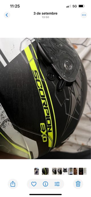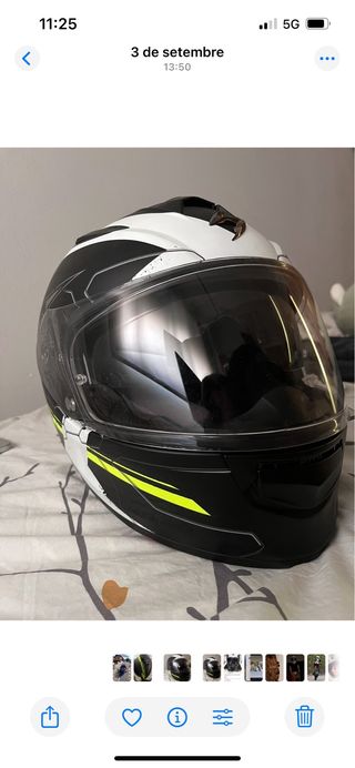 Casco de moto marca Scorpion, modelo EXO. Se encuentra en excelente estado, solo la tela de la parte del cuello se ha despegado pero no molesta ni afecta nada, es solo el detalle. Talla S - Diseño deportivo. - Visera clara. - Color blanco y negro con detalles en amarillo.