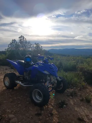 Quad Yamaha Raptor YFM 350r del año 2006. Tiene ITV, motor reconstruido entero hace un año. Cigueñal nuevo, embragues nuevos cilindro, Pistón y rodamientos del motor nuevos, válvulas nuevas. Tiene el reglaje de válvulas y el cambio de aceite recién echo hace menos de 1 mes. Todo se lo he hecho yo, soy mecánico. Tiene ITV y está en perfecto estado, con muchos extras: parrillas cubrecárter, protecciones de ejes, protector de chasis, etc.Cabe la posibilidad de entregar con rodillo antivuelco artesanal echo a medida y matrícula pequeña.Tengo todas las piezas de casa(foco intermitentes etc)para la itv.Se puede ver y probar.¡No mareantes!