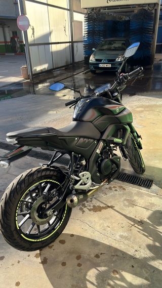 Yamaha MT-125 2023 | Negra mate | 10.000 km Vendo Yamaha MT-125 por poco uso. Moto muy cuidada, siempre en garaje y con mantenimiento al día -Color negro mate -ABS, TCS -Bluetooth con el móvil -Diseño deportivo y detalles verdes en las ruedas (removibles) -Escape Mivv XM-01 con bala homologada (valor 400€, se entrega original) -Se entrega con cambio de aceite y filtro recién hecho -ITV hasta fin de 2027 A los pocos km se cambió el árbol de levas en garantía en taller oficial Yamaha(solucionado sin problemas y con facturas) Tuvo un pequeño choque sin afectar a la mecánica; estética reparada. Lista para usar. Más info por mensaje.