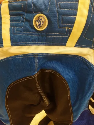 Pantalón de diseño deportivo para motocross. - Detalle de logo circular en la parte superior. - Paneles de tela en contraste. - Costuras reforzadas.