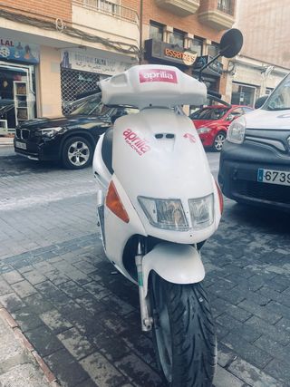 Scooter Aprilia 125 en color blanco. - Diseño deportivo. - Espejos retrovisores negros. - Rueda delantera negra. Moto en buen estado ITV al día revisada de todo