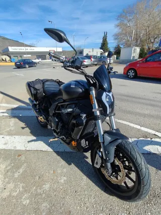 Motocicleta Benelli 502C (06/2022) -Impecable. Sin un golpe. -batería nueva -Duerme en garaje. -22000 kms. -Muchos extras: Escape Akrapovik, manetas de freno, cúpula, estriberas y depósito personalizados. -Se entregan originales de: Escape original, respaldo trasero. De regalo: una funda de moto, candado con alarma para el disco de freno y otro de tipo pitón y dos maletas laterales, donde puedes meter el casco sin problema (Todo literalmente sin estrenar). -Precio rebajado, antes 5000€