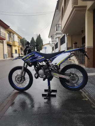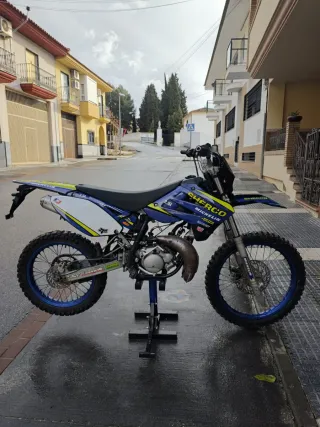 Moto de estilo motocross con un diseño llamativo. - Colores principales: azul y blanco. La moto va muy bien como el primer día es mejor ver y probar si queréis hablarme este número , 604903231