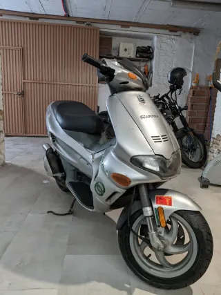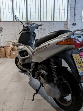 Scooter Gilera Runner 50 DD en color plata. Estéticamente está peor, pero de motor está todo nuevo con itv pasada en noviembre. Filtro y tubos de admisión nuevos, circuito de gasolina nuevo, rodamientos del embrague nuevos. Solo 7155 km.