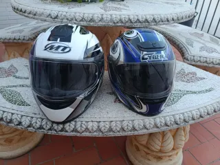 Se venden dos cascos de moto, uno de la marca Cyber y otro de MT Helmets. Ambos están en perfecto estado. - Casco MT Helmets blanco con detalles negros y plateados. - Casco Cyber azul con diseño deportivo y detalles blancos. Se venden juntos y separados a 15e cada uno. No se hacen envios.