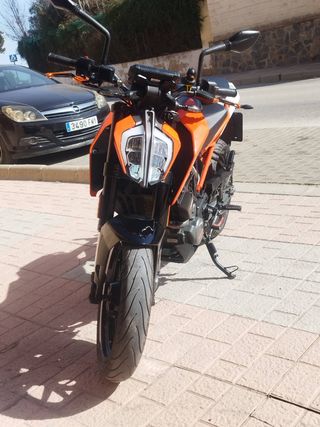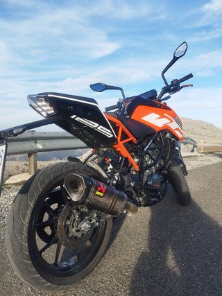 Moto KTM DUKE 125 2019 en color naranja y negro. - Diseño deportivo. - Ruedas de aleación. - Escape Akrapovič homologado en ficha y panza tambien homologada (valorado en 760€)Porta matrículas corto, tambien se entrega el de serie ITV hasta 2026 - manetas de aluminio retráctiles en color naranja Moto muy cuidada y mimada Se vende por no usar 18500km.