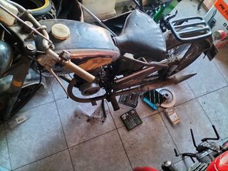 Reconstrucción muy adelantada. Pintada, cromados restaurados, carburador, llantas y asiento nuevos. Cambio en el depósito. Documentación antigua. A recoger en provincia de Tarragona. se vende sin documentación