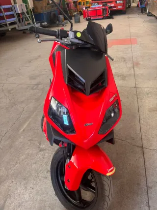 Moto de 50cc en color rojo, con muy pocos kilómetros recorridos. - Diseño deportivo y moderno. - Asiento negro. - Ruedas en buen estado.
