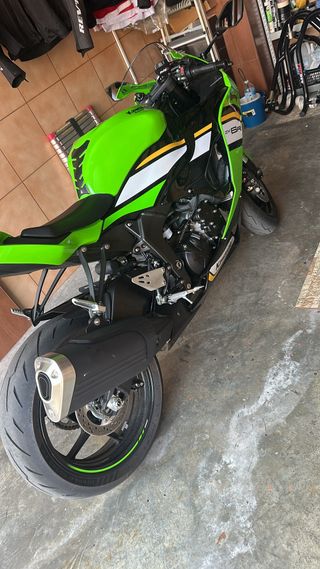 Moto deportiva Kawasaki ZX6R de abril 2025 - Diseño deportivo. - Combinación de colores verde y blanco. - todos sus mantenimientos al día - pack de mantenimeintos pagados hasta los 36mil km -12500km -escape arrow homologado entrego el de casa tambn -neumáticos delantero diablo rosso 4 neumático trasero,s21 con menos de 1000 km -porta matriculas recortado homologado y se entrega original tambien