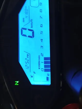 Moto de 125cc en color azul. - Odómetro: 418.8 km - Velocímetro: 0 km/h - Indicador de combustible - Indicador de marcha N