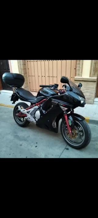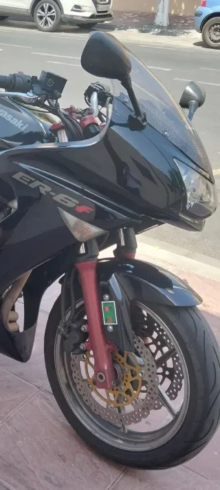 SÓLO ESTA SEMANA Kawasaki ER-6F 2007. - 84.000 Km - Papeles al día, ITV hasta diciembre de 2027 (No tiene seguro ya que se lo pasé a otra moto). - Limitada tanto en paleles como físicamente para llevarla con el carnet A2 (limitación nueva de 35 Kw). - Todos los mantenimientos al día. - Aceite 10W-50 y filtro de aceite con 3000 km. - Filtro de aire recién cambiado, no tiene ni 300 km. - Neumático delantero a media vida. - Neumático trasero nuevo. - Pastillas delanteras y traseras en perfecto estado (delanteras prácticamente nuevas y traseras recien puestas, nuevas). La vendo porque me he comprado una de más cilindrada.