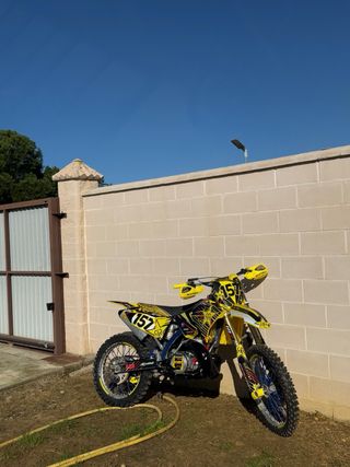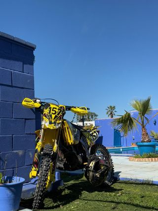 Moto de cross Suzuki RM 250 de dos tiempos del año 2008. - Motor hecho entero y en rodaje - Kit de plasticos y pegatinas nuevas - Neumaticos nuevos - Manillar y manguitos reforzados nuevos - Pastillas de frenos y liquidos nuevos - Espuma del manillar y puños protaper - Suspensiones delantera y traseseras hechas - Escape recien restaurado sacado de bollos y pintado con pintura anticalorica - Anticongelante , filtro de aire y aceite nuevos Moto muy cuidada