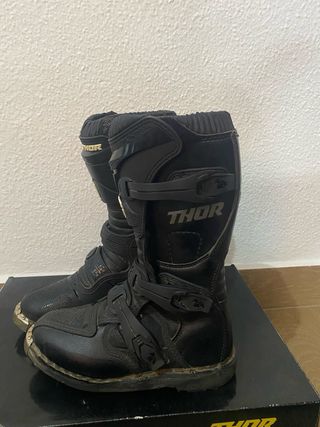 Botas de motocross de la marca Thor en color negro. Diseñadas para ofrecer protección y comodidad en la conducción. - Cierre con hebillas ajustables. - Diseño alto para protección de la espinilla. - Suela resistente. - numero 35 - muy buen estado