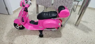 Moto infantil estilo Vespa en color rosa. - Modelo de 12 voltios. - Incluye parabrisas.