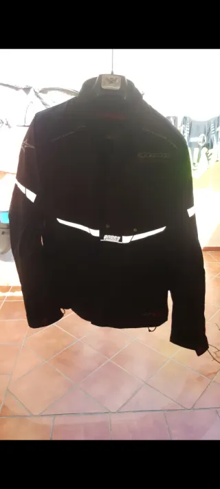 Chaqueta de moto Alpinestars en talla M. Diseñada para ofrecer comodidad y protección. - Color negro. - Cierre frontal con cremallera y solapa. - Múltiples bolsillos exteriores e interiores. - Detalles reflectantes en mangas y frontal. - Cuello alto ajustable.