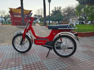Vespino NL T3 de 1978, modelo NXA de llantas de aleación. Pocas unidades, versión cromados. Moto hecha desde cero, motor restaurado completo con cilindro y pistón nuevos, retenes, rodamientos, variador polini, embrague reforzado, etc. Todos sus elementos son originales incluida la carburación. Hay que hacerle el rodaje. Por favor, no escribir para regateos, tiene mucho dinero en piezas y tiempo.