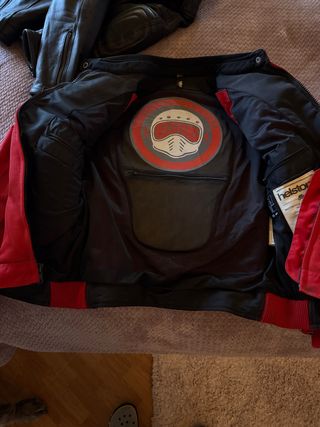Chaqueta de moto Helstons con diseño interior para mujer - Detalle de casco con círculo rojo en la espalda. - Bolsillo interior con malla. - Etiqueta de Helstons Motorcycle. Protecciones tanto en la espalda como en los codos Muy poco uso Entallada Talla xl